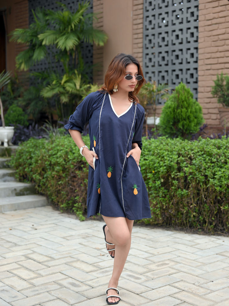Introducing our Hand-Embroidered Linen Dress, featuring a charming tropical pineapple motif. Crafted from breathable, sustainable fabric, this dress combines comfort and style effortlessly. Perfect for sunny days and tropical getaways, this eco-friendly piece adds a playful touch to your conscious wardrobe. Embrace sustainable fashion with this unique and vibrant dress.