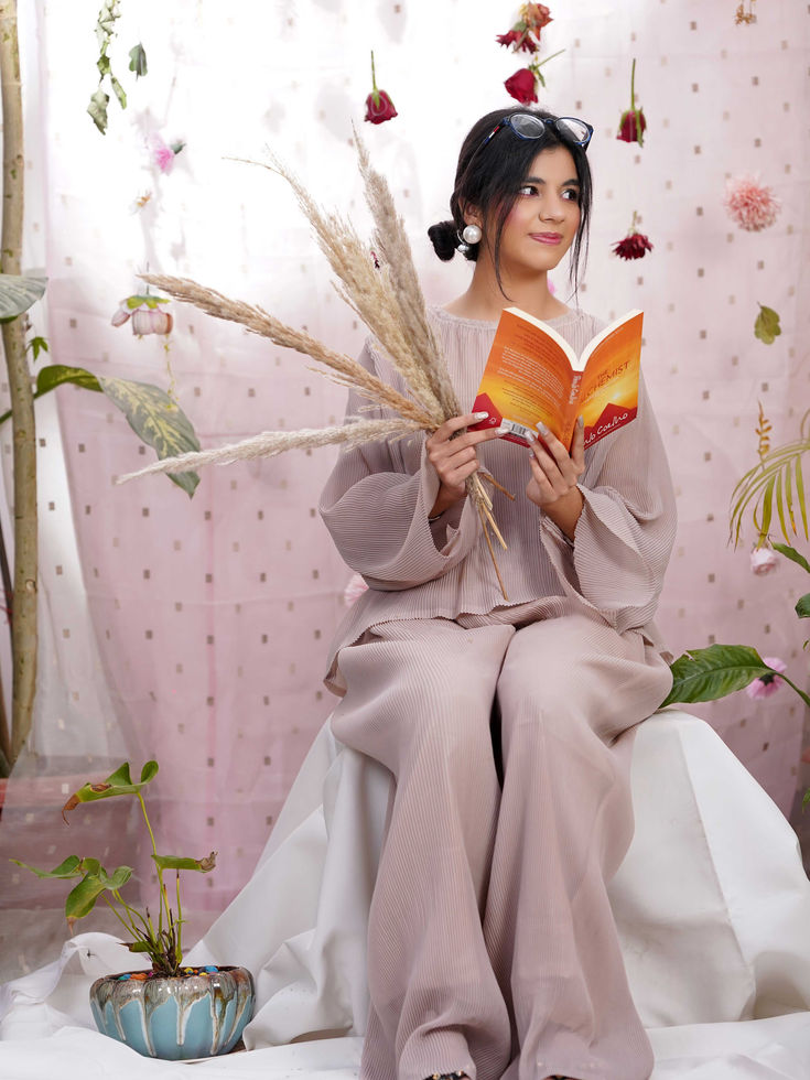 Step up your style with our pleated georgette co-ord set, crafted from 100% sustainable materials. This elegant and comfortable ensemble is perfect for achieving a chic airport look or a relaxed lounge vibe. Embrace sustainability while looking effortlessly sophisticated.